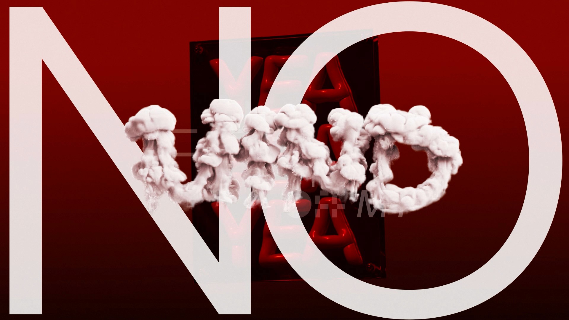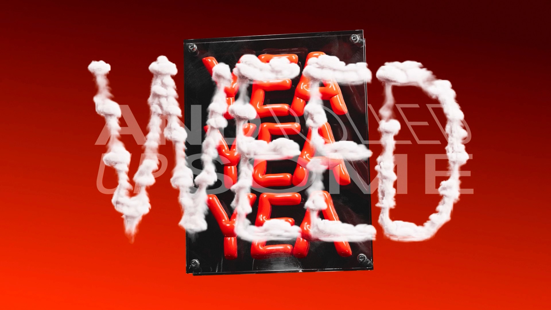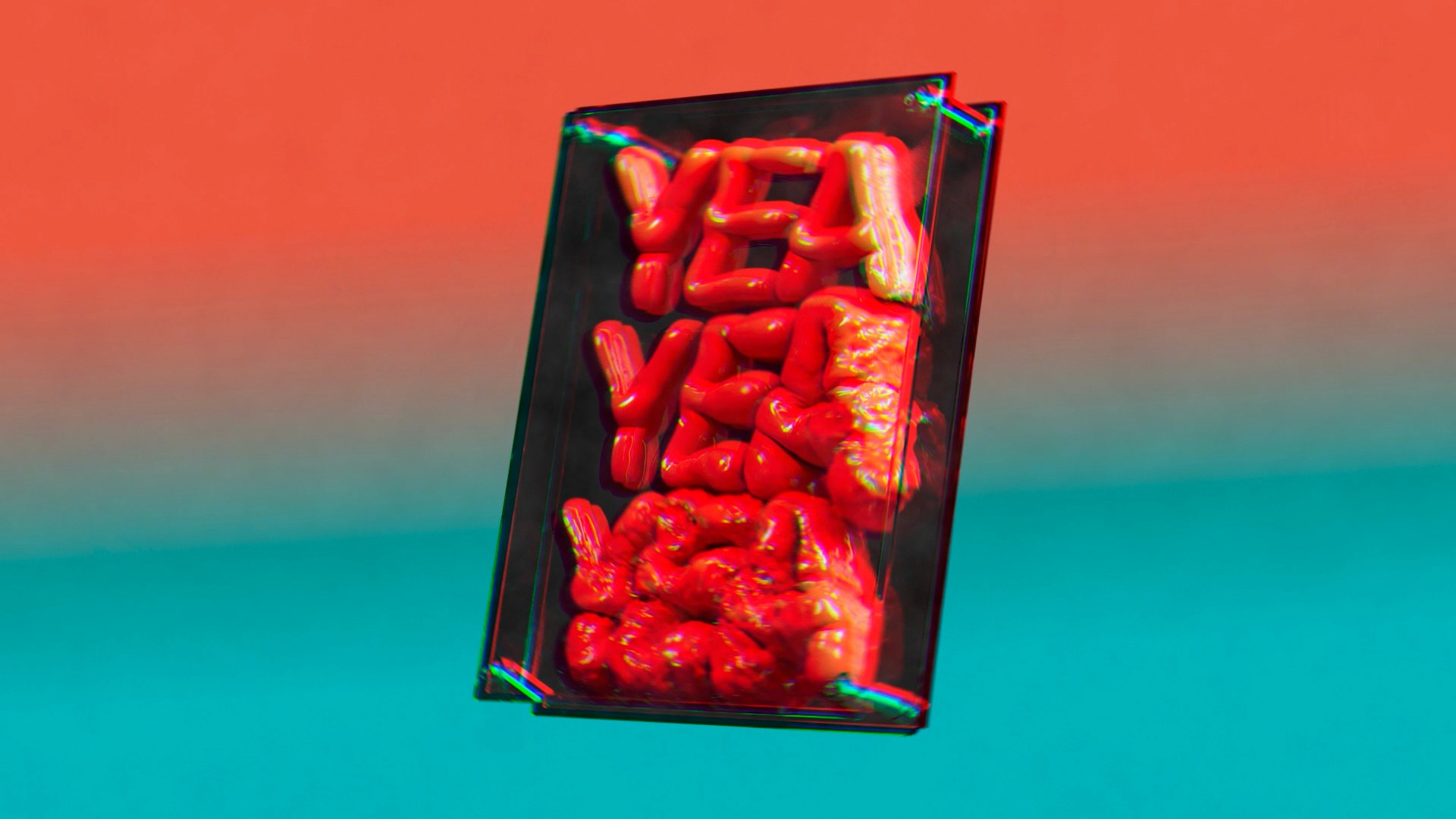The base shapes for the anchoring 3D YEA YEA YEA were built using a cloth simulation. To time the inflation precisely, I then used the different states (semi-inflated, full inflation) as morph poses, triggered by animated fields.