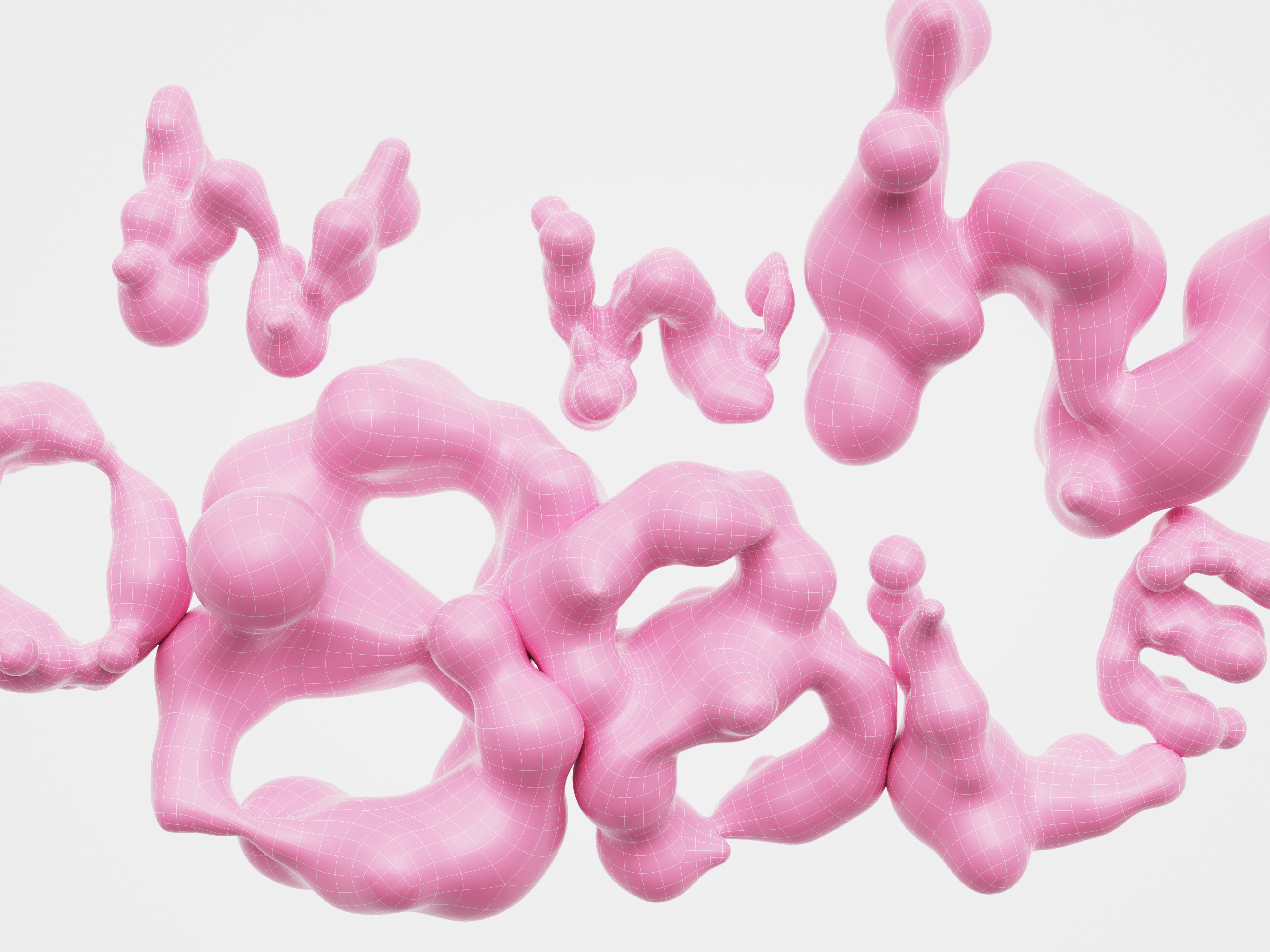 Using a typical 3D motion graphics toolset of splines, cloners, random noises and VDB meshing, I created a parametric typeface that would be flexible in production use, visibly 3D made, proudly showing the traces of its origins.